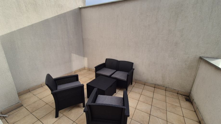 U potpunosti novouređeni stan na mirnoj lokaciji. Stan se sastoji od hodnika s garderobom, kuhinje, dnevnog boravkom s izlazom na nenatkrivenu terasu, spavaće sobe te kupaonice. Namješten i opremljen, perilica suđa, klima uređaj, perilica rublja,...