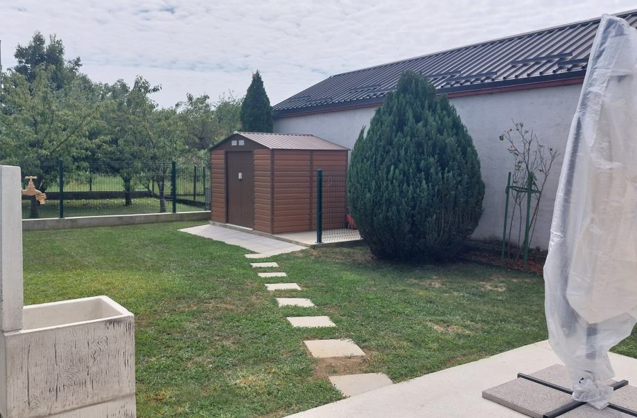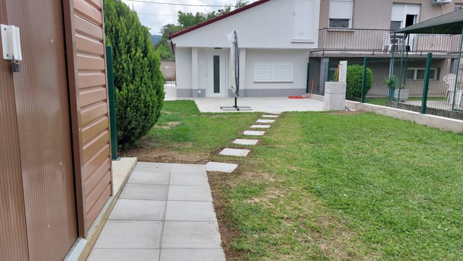- Zatvoreno dvorište sa parkirnim mjestom, terasom i zelenom površinom. Na korištenje vrtni namještaj i vrtna kućica (spremište za namještaj, bicikle, romobile i sl)