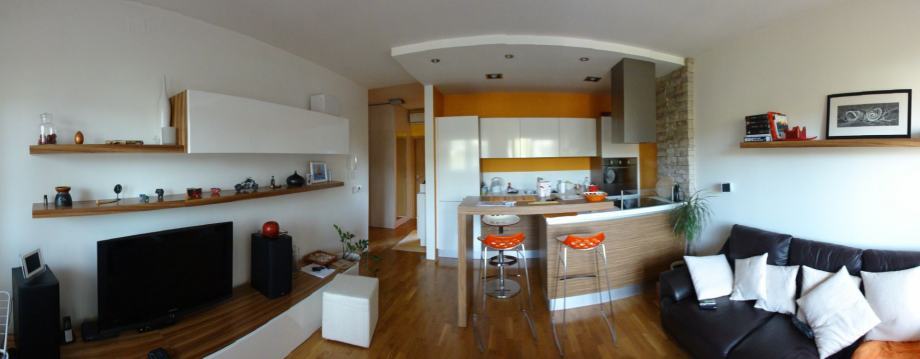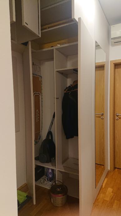 Oprema: PVC vanjska stolarija sa PVC roletama, protuprovalna vrata, portafon, priključak za telefon, TV, internet, klima, hrastov parket, zatvorena lođa sa PVC kliznim stijenama.