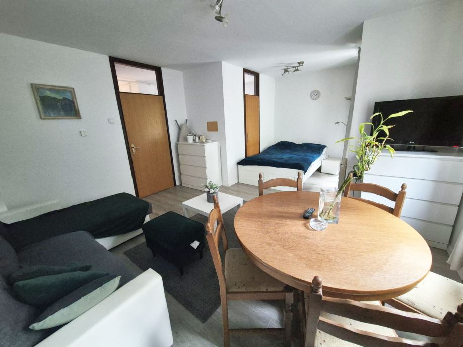 Stan se sastoji od dnevnog boravka sa krevetom, kuhinje, spavače sobe i kupatila s WC-om.