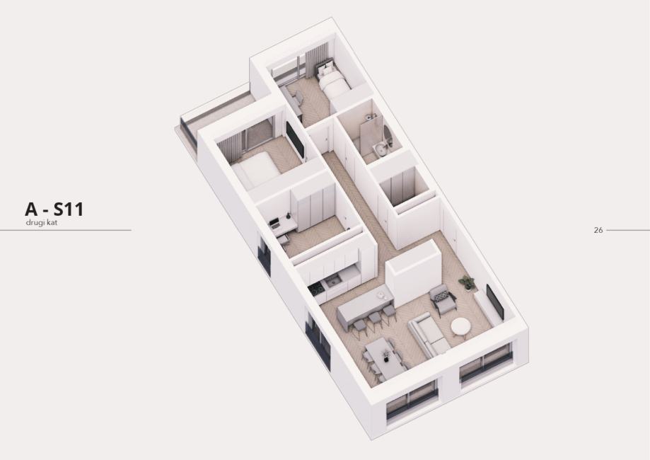 Ukupno cca 27 stanova različitih tipova i veličina (od 2- do 4-sobnih)