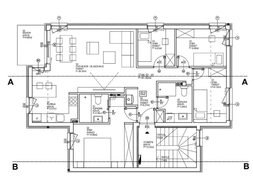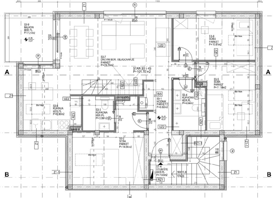 PETEROSOBNI NA 1. KATU 97.03 m2 ( DB+4S + uključeno parking mjesto i ostava u podrumu)