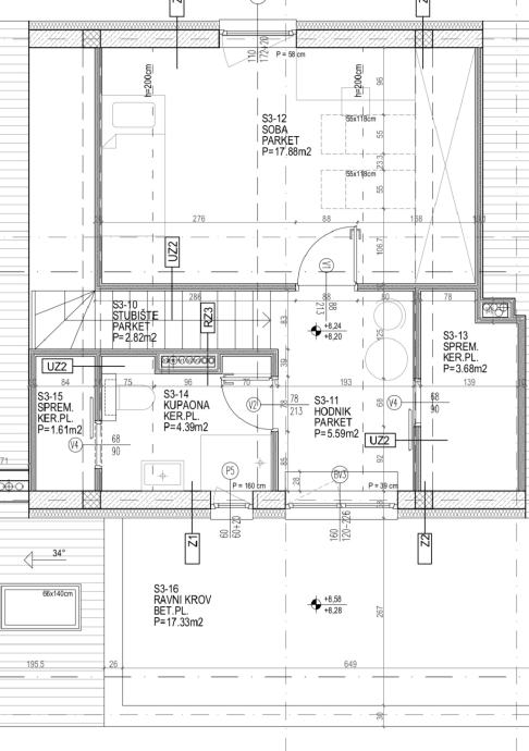 PETEROSOBNI dvoetažni na 2.katu od 123.74 m2 dnevni, kuhinja, 4 spavaće i 3 kupaonice, dvije terase , ostava u podrumu i 2 parking mjesta