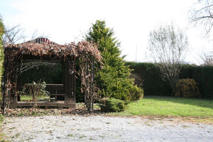 Ispred kuće dvorište sa sjenicom i roštiljem, zgodno za djecu jer je ograđeno i povučeno od glavne ceste.