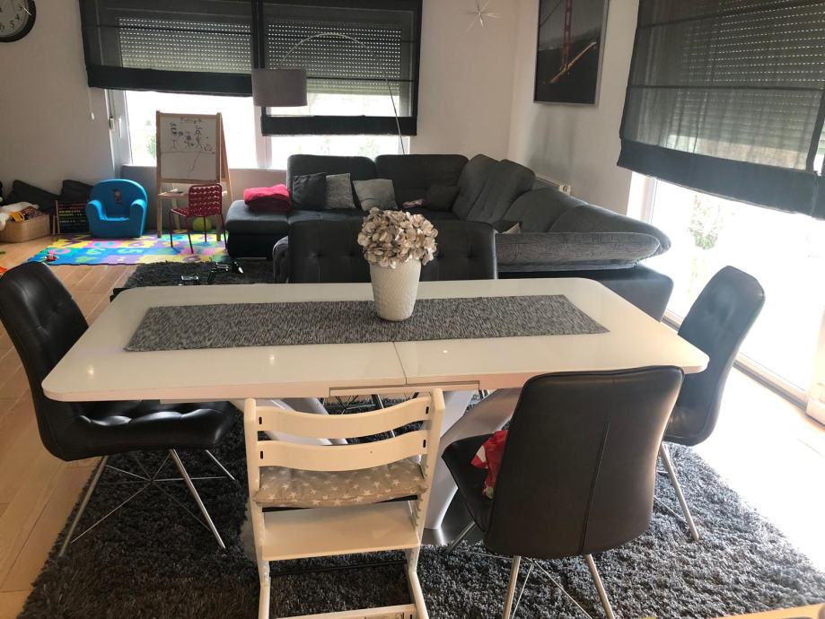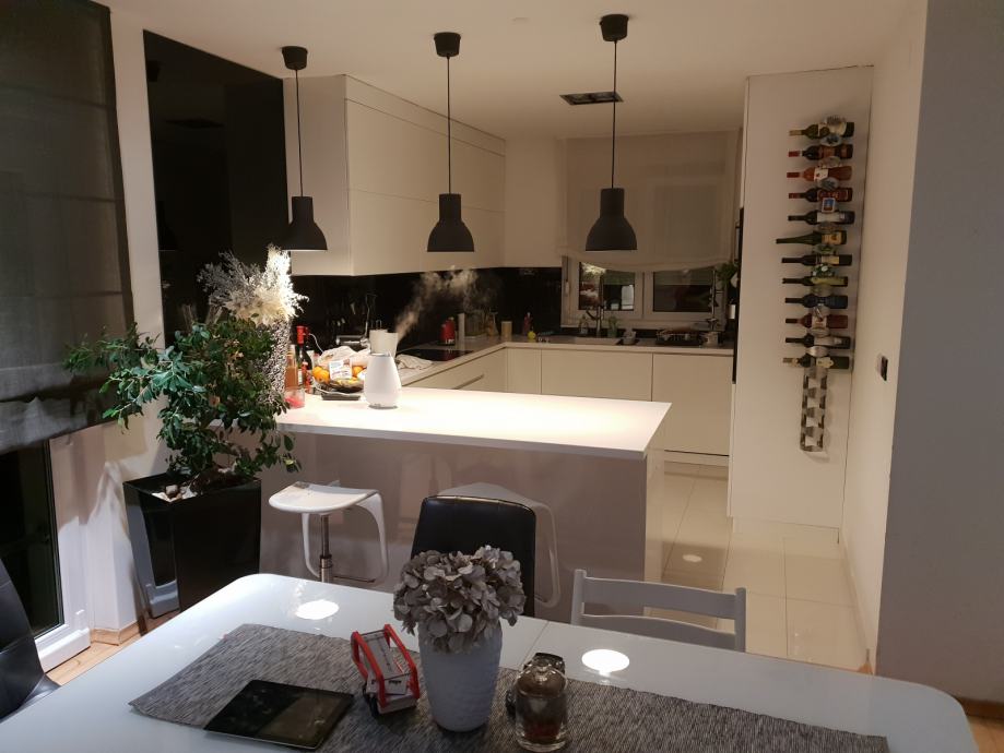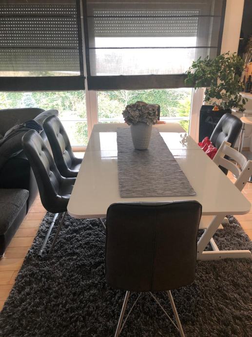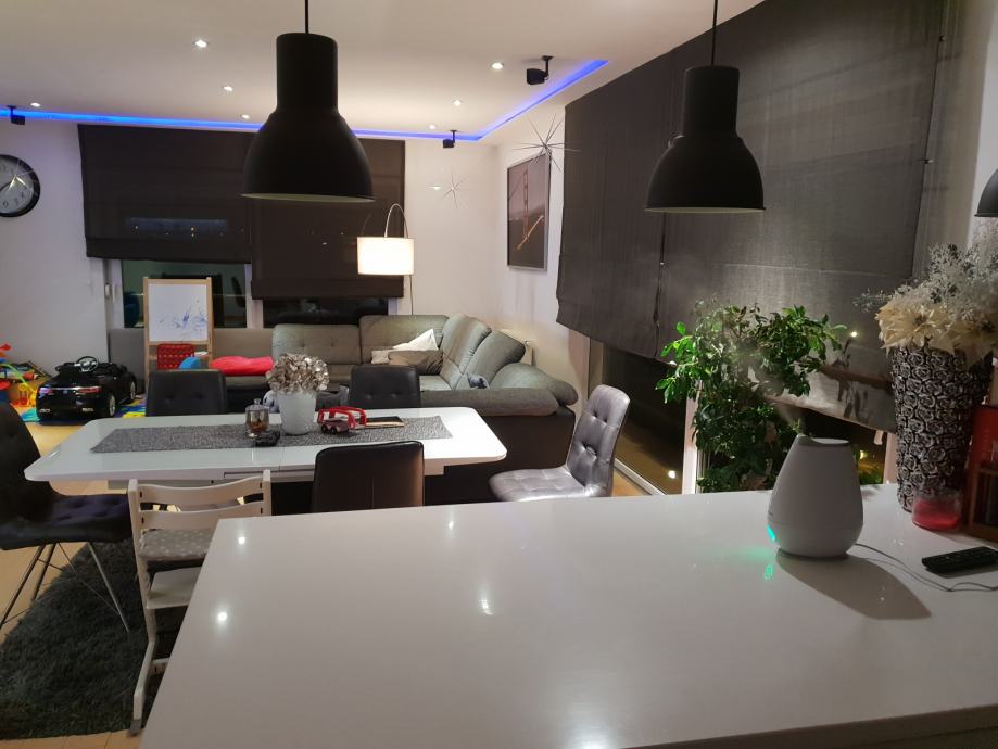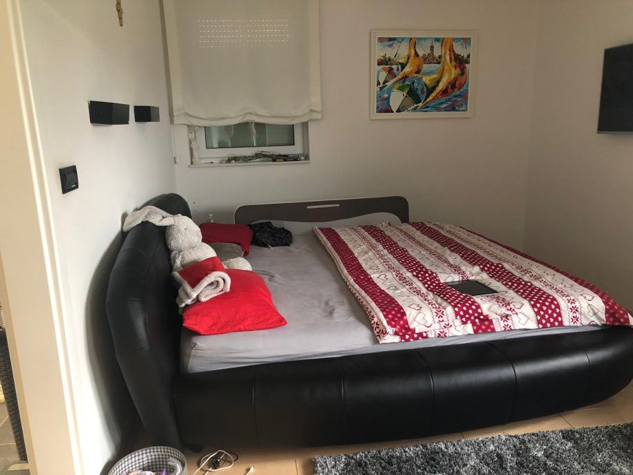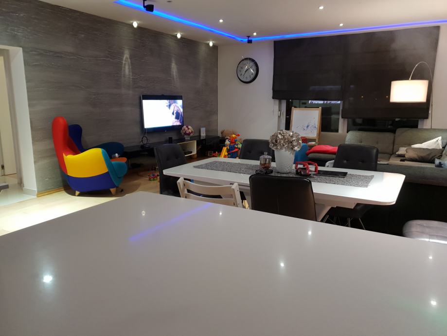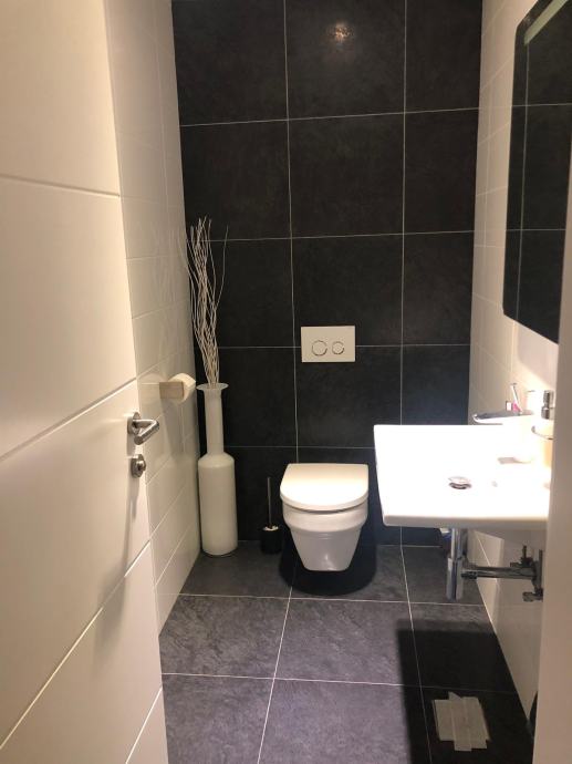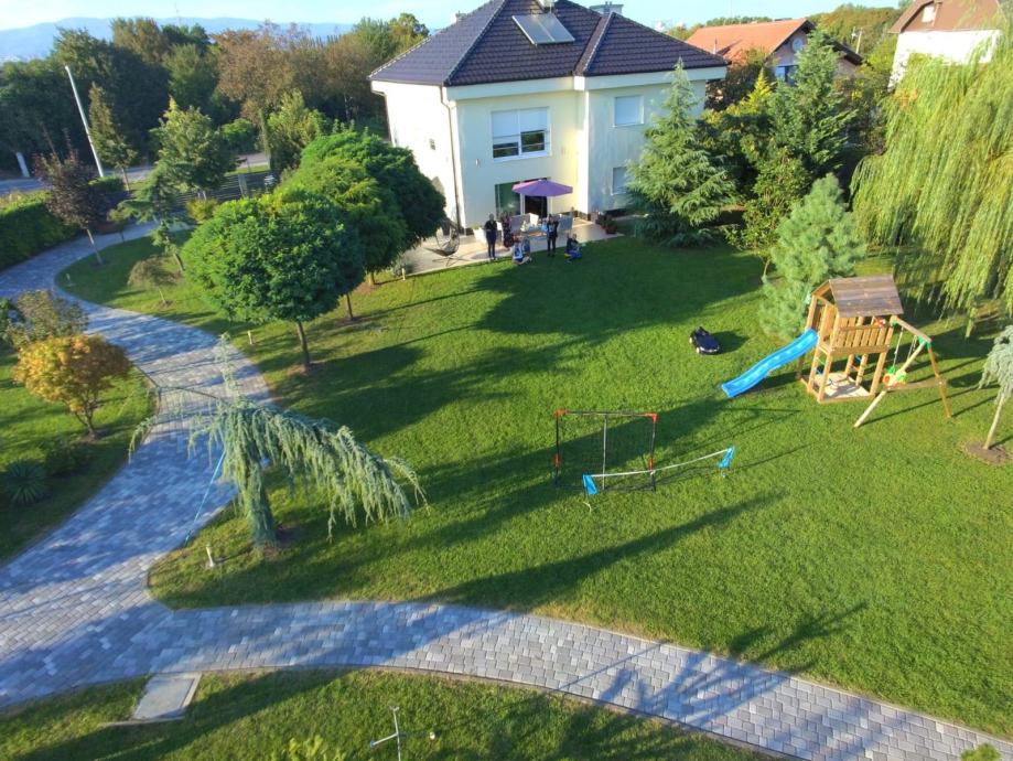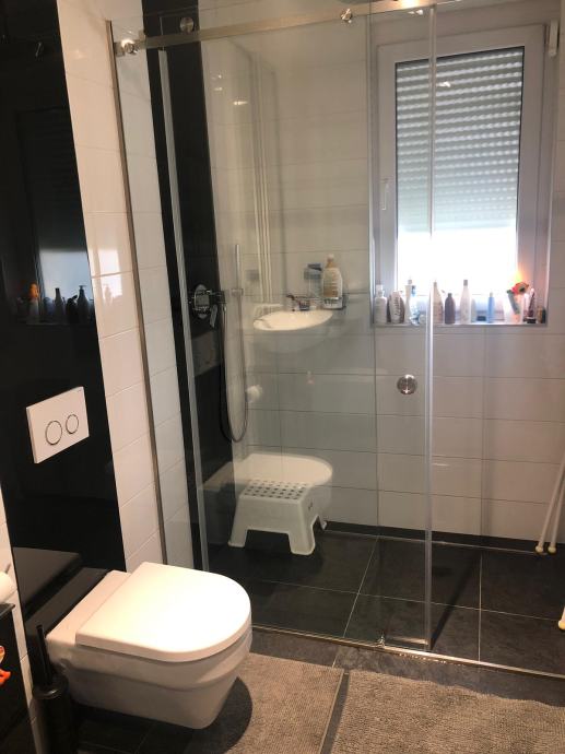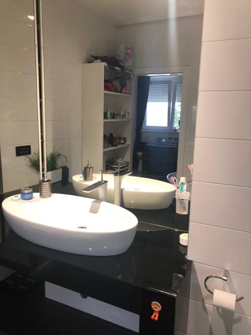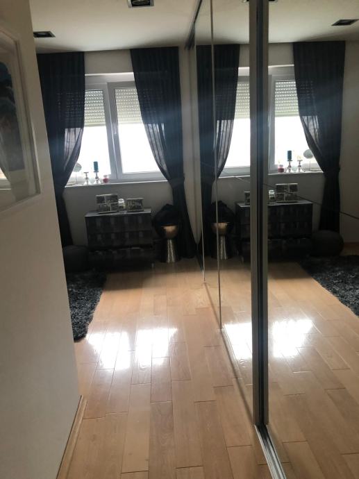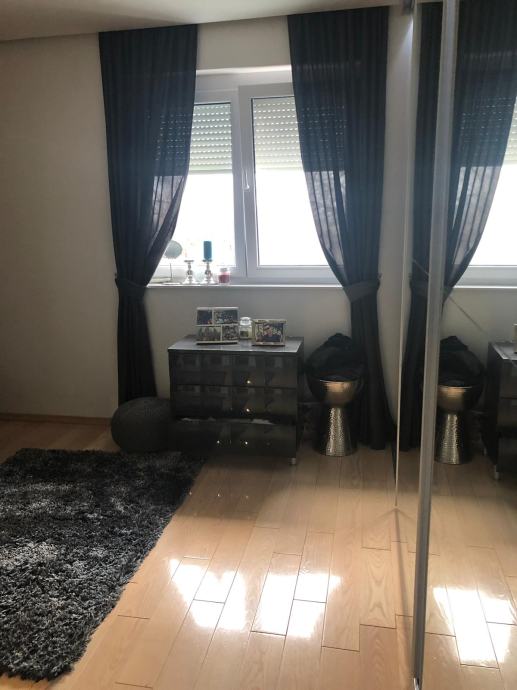 Stan se nalazi na gornjem katu obiteljske kuće, stan se sastoji od velikog dnevnog boravka sa kuhinjom, roditeljske sobe sa velikim kliznim ormarom te velikom kupaonom te dječe sobe koja je u potpunosti namještena i ima zasebnu kupaonu sa tušem. Stan je opremljen sa svim vrhunskim aparatime te ozvučenjem. Na raspolaganju je veliki vrt sa vrtnom kućicom i roštiljem.