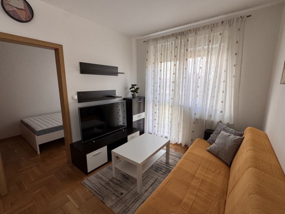 Iznajmljuje se potpuno namješten stan, odmah useljiv i spreman za svakodnevni život.
