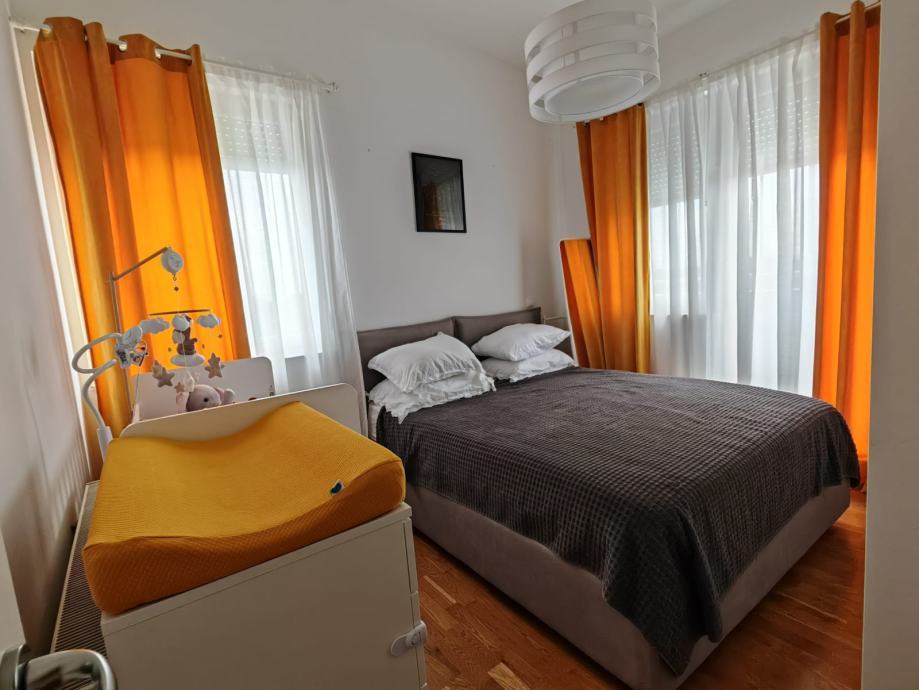 Pvc stolarija, protuprovalna vrata, parketi, ugrađeni novi komarnici na svim prozorima i kliznoj stijeni.Ugrađene nove staklene stijene na kadi.