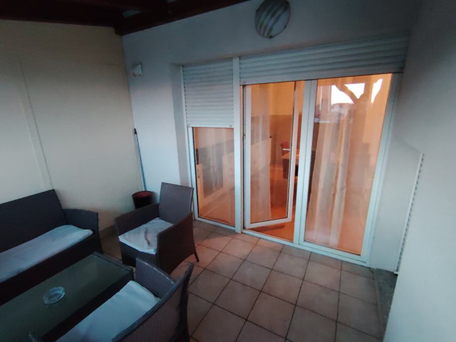 Stan je potpuno opremljen i takav se iznajmljuje: osim namještaja, tu su perilica rublja, perilica posuđa, veliki hladnjak s velikom škrinjom, klima uređaj, televizor, internet... U boravku su dva krovna prozora s roletama za zamračivanje (sve je marke Velux) što ljeti sprječava brzo zagrijavanje prostora. Terasa je pod krovom pa se može koristiti tijekom cijele godine.