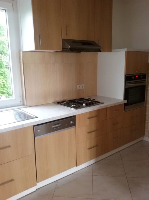 Sastoji se od dnevnog boravka s blagovaonicom i izlazom na terasu i vrt, kuhinje sa svim aparatima, 3 spavaće sobe, kupaonice, WC-a i praonice rublja. Stan je opremljen protuprovalnim vratima, video-portafonom, klima uređajem, plinskim centralnim grijanjem.