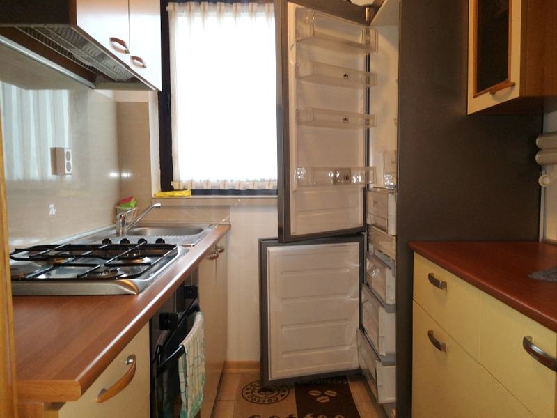 Od opreme stan sadrži : perilica rublja, perilica sudja, frizider s ledenicom, ploča za kuhanje, pećnica, tv uređaj, klima uređaj.