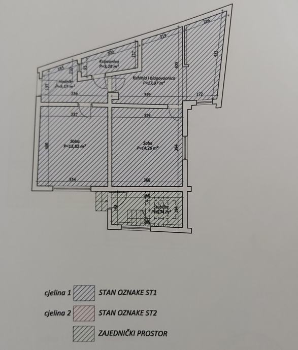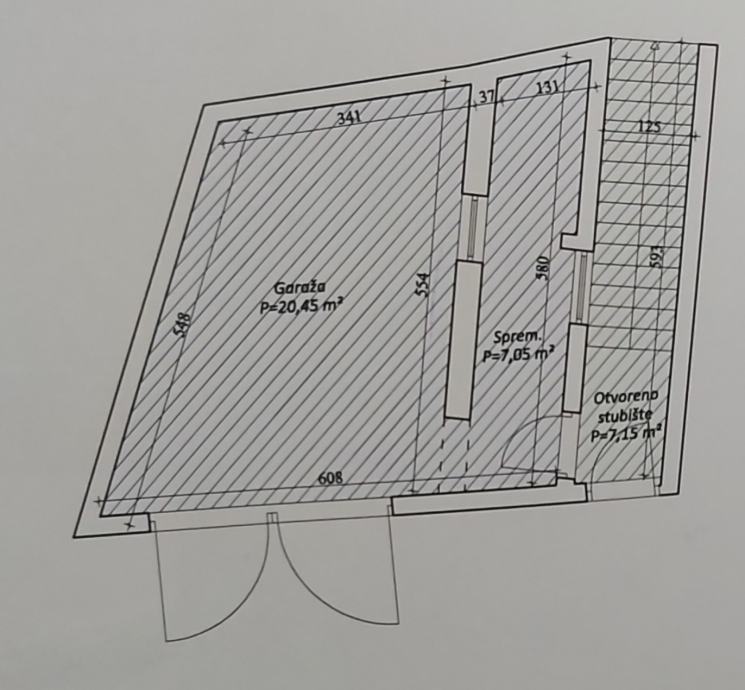sobe ukupne površine 54,48 m2, s pripatkom garažom sa spremištem ukupne površine 27,50 m2
