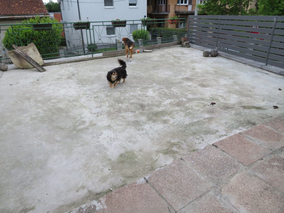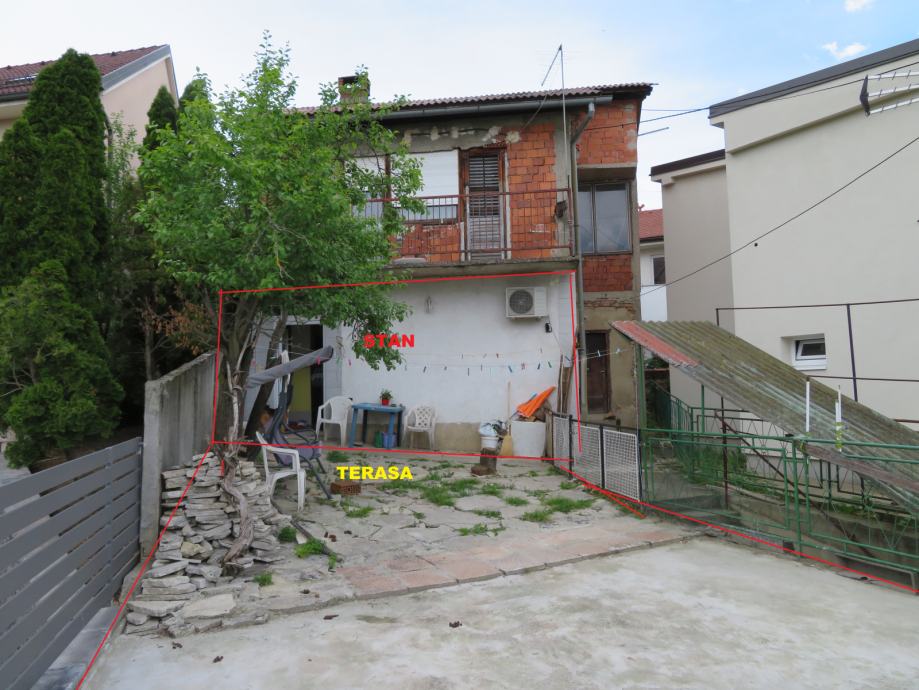 Sran je potrebno urediti. Ispred stana a nad garažom postoji terasa cca 60m2 koja je u isključivom korištenju stana u prizemlju što je definirano Međuvlasničkim ugovorom.