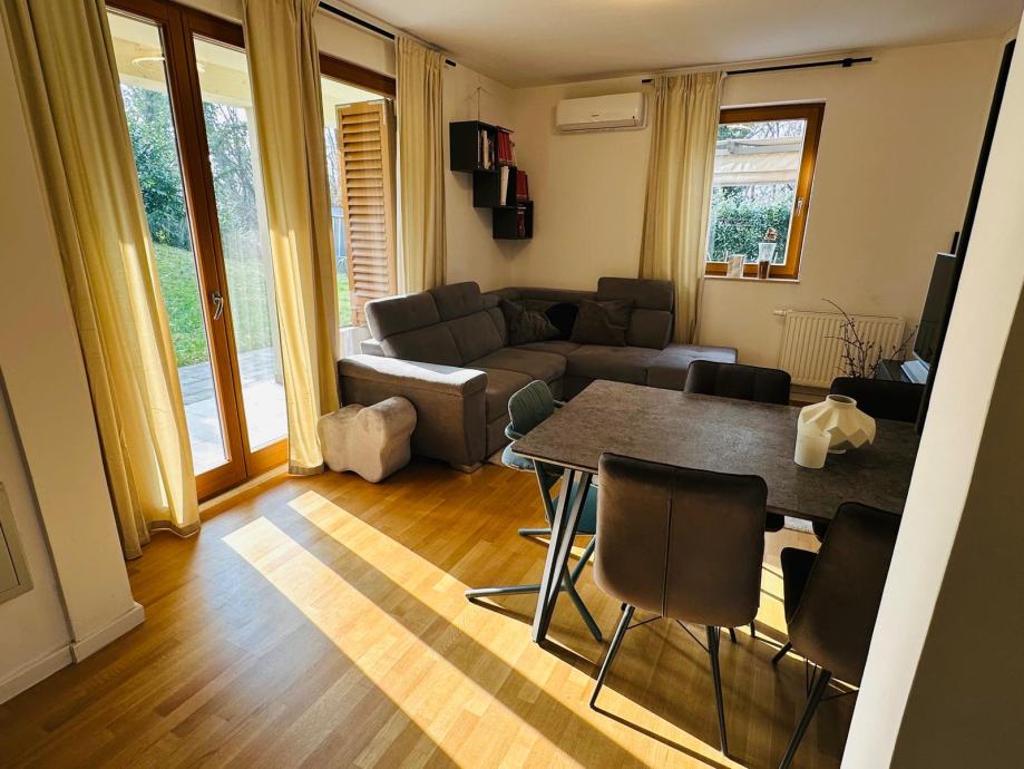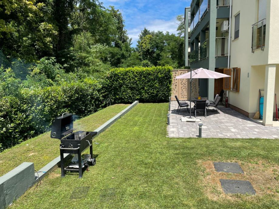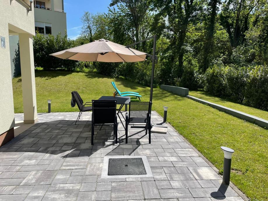 Stan se nalazi na etaži -2, te ima izlaz sa stražnje strane na vlastiti vrt površine cca 250m2. Dio vrta je popločen, a dio je travnata površina.