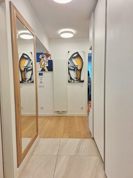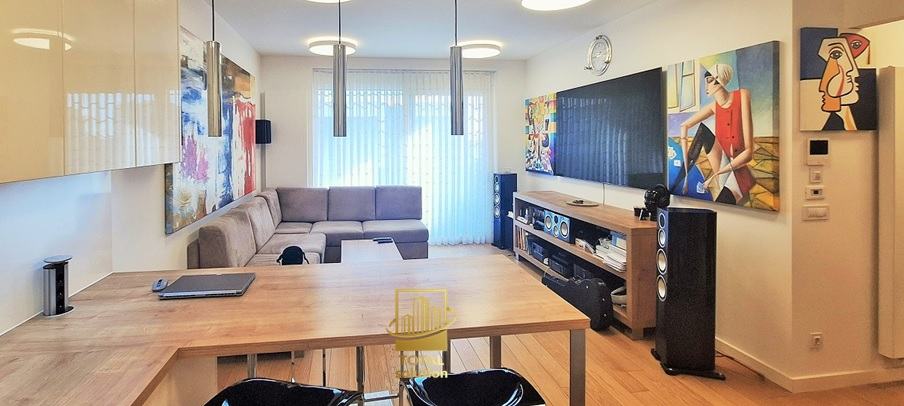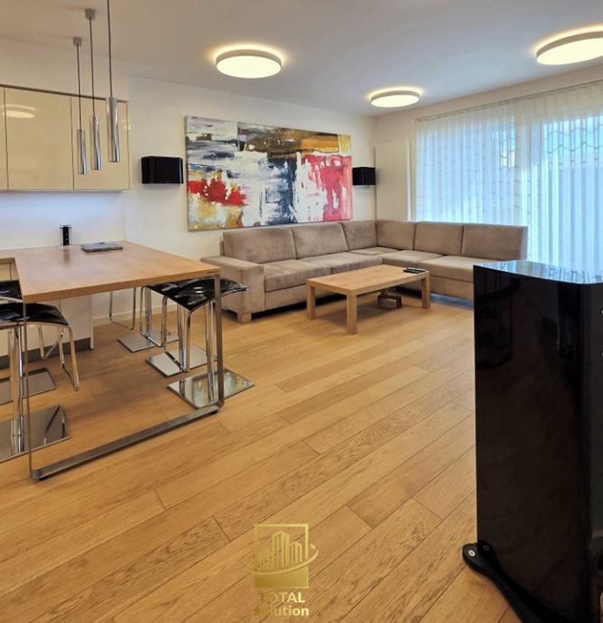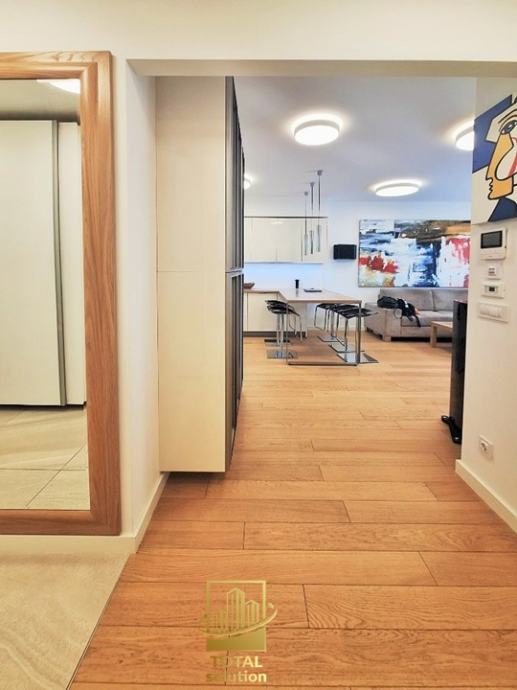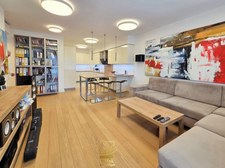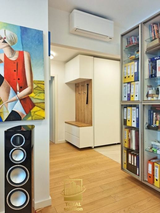 Stan je opremljen vrhunskom opremom i dizajnerskim namještajem, SMART-HOME sustavom i ostalom opremom visoke klase i ekstra nadograđenim elektro-sustavom (sustav 12KWh vršnog opterećenja u stanu i garaži, trifazni priključak). Cijelokupne pokretnine u stanu uljučene su u pradajnu cijenu (detaljan popis opreme niže u oglasu).