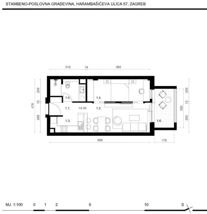 Ukupna kvadratura stana iznosi 45,29 m2.