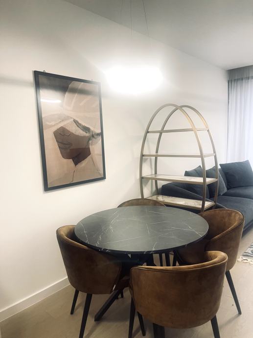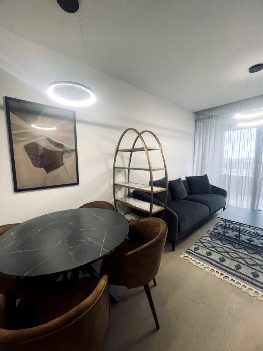 Iznajmljuje se luksuzan, potpuno novi stan u novogradnji, prvi najam, na atraktivnoj lokaciji (Svetice). Stan je moderno uređen i opremljen vrhunskom opremom.