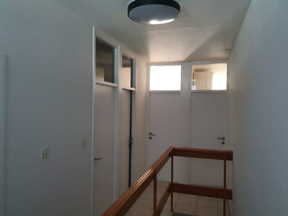 Gornja etaža sastoji se od tri sobe, kupaonice, toaleta, ostave i lođe.