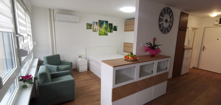 Novouređen i namješten komforan jednosobni stan. Dugoročno iznajmljivanje, uz ugovor (moj porez).