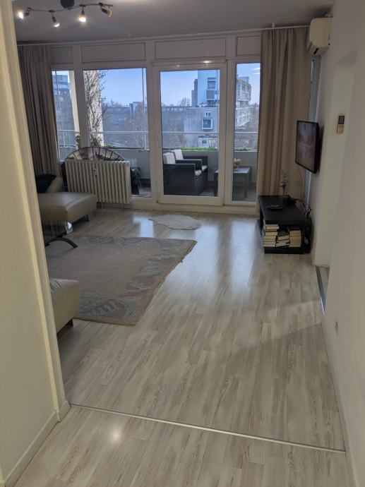 Stan je potpuno namješten, svijetao i funkcionalnog rasporeda, te pruža ugodan prostor za život osobama koje traže stabilan i dugoročan najam. Sastoji se od dnevnog boravka, kuhinje s blagovaonicom, dvije spavaće sobe, kupaonice, zasebnog WC-a i hodnika. Ugrađeni razdjelnici za grijanje i vodu, režije prema potrošnji.