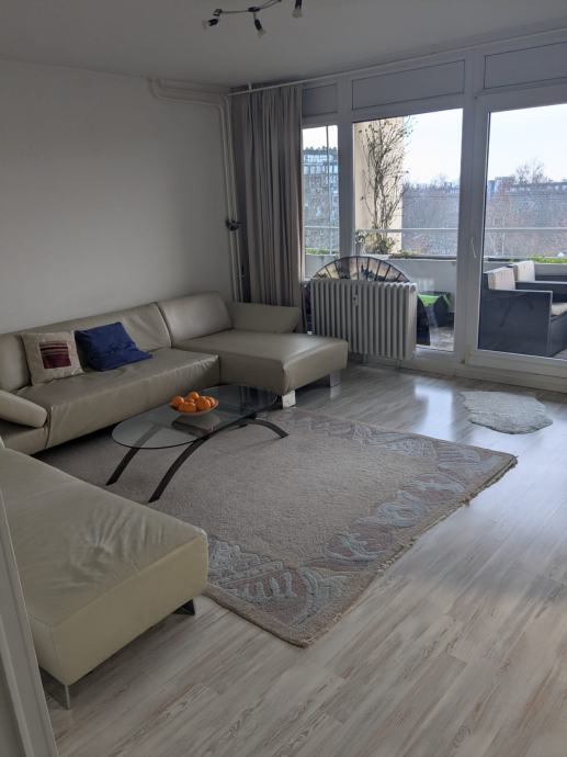 Dugoročno se iznajmljuje uredan i održavan stan površine 80 m² u zagrebačkom naselju Travno, smješten na 7. katu stambene zgrade s ukupno 8 katova i dva lifta.
