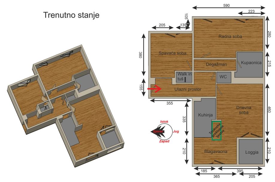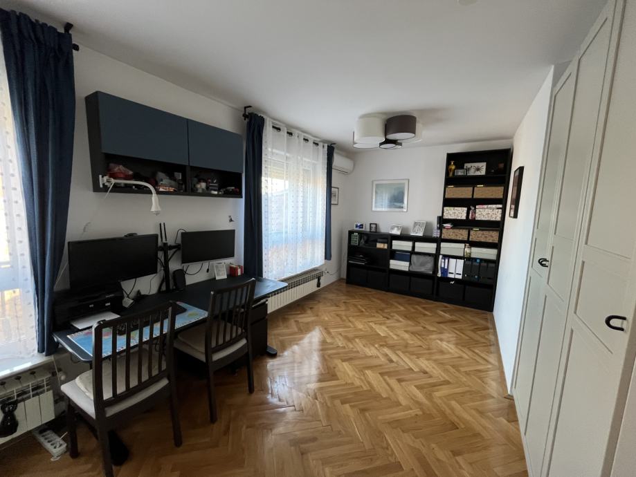 Komforan 4-sobni stan u originalu (trenutno 3-soban uz ostavljenu laku preinaku). Stan se nalazi na 4-tom katu od ukupno 5. Tavanski prostor je povezan ulazom iz stana i grijan je te predstavlja mogućnost druge namjene (s prozorskim otvorom). Postoji i priključak vode. Stambeni prostor iznosi 90,94 m2, a tavanski 18 m2. Kod renovacije izvršena je kompletna izolacija stana kamenom vunom svih vanjskih zidova, te zidova okrenutih prema stubištu što je polučio znatne uštede u grijanju. Ugrađeni PVC prozori s troslojnim staklom i zaštitom od sunca, te komarnicima. Za izdvojit je da stan ima zaseban dimnjak i nije ovisan o drugim stanovima. Stan je opremljen s 3 klima uređaja, te dodatnim bojlerom na struju. Orijentacija stana je istok - zapad. Stanu pripada i skladišni prostor na razini -1 pogodan za držanje bicikla. Zgrada raspolaže zajedničkim prostorom za bicikle i vlastitim parkirnim mjestima. Stan se nalazi nasuprot parkirališta ispred hotela Zonar, te predstavlja jedinstvenu lokaciju na Trakošćanskoj ulici s pogledom na zelene površine do Selce ceste. Zgradu je armirano betonska, izgradila tvrtka Industrogradnja, u potresu nije imala nikakvih oštećenja. U zgradi postoji prostor za ugradnju lifta i ishođena je cjelokupna projektna dokumentacija. Adresa stana je Kučerina 15. Stan je dostupan od 31.07.2025.
