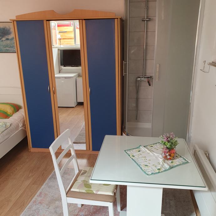 Iznajmljuje se krasan, moderno uređen stan studentu, nepušaču, bez kućnih ljubimaca, 20 m2, na Trešnjevci. Stan je u prizemlju i se sastoji od: sobe, tuš kabina, WC, umivaonika, hodnika. NEMA KUHINJE; dakle mora se hraniti u menzi.