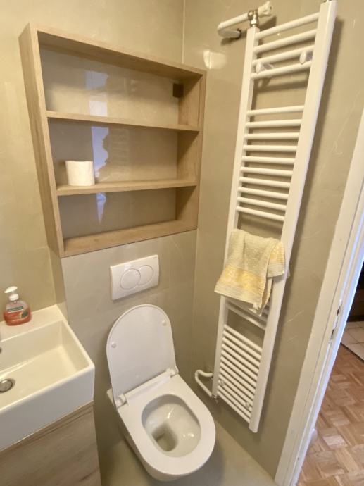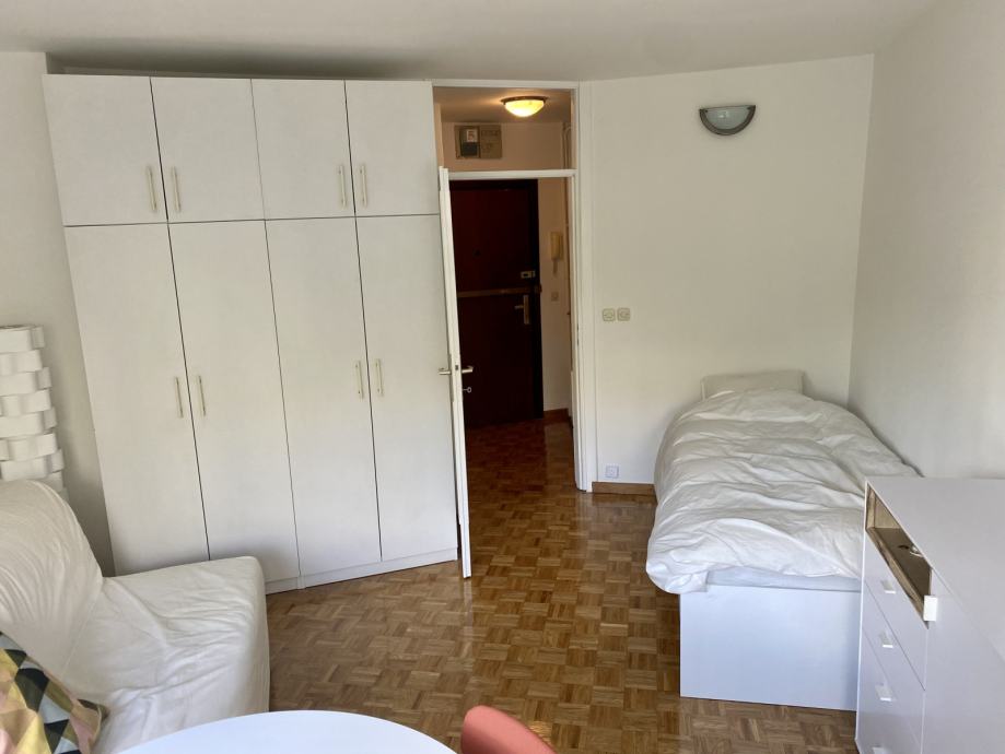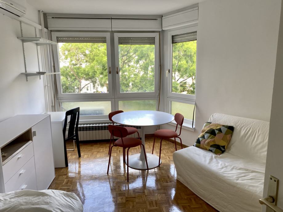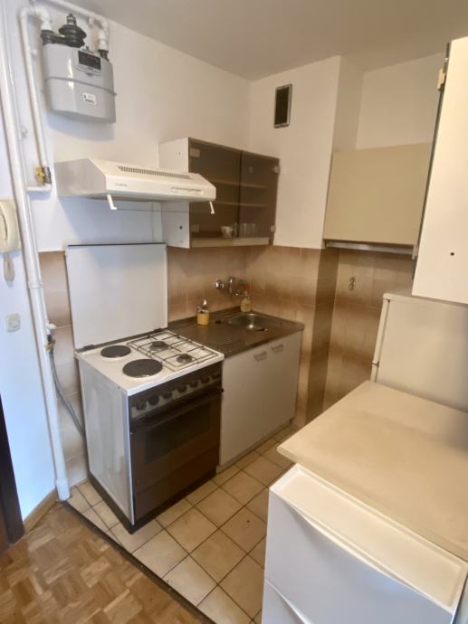 Iznajmljuje se garsonijera na drugom katu zgrade s liftom na Trešnjevci. Stan je ugodan i pun svjetla. Pregradni zid se nalazi između kuhinje i sobe. Grijanje je na toplanu, ugrađen je klima uređaj. Kupaonica je renovirana i lakirani su parketi. Orijentacija je na mirnu dvorišnu stranu. U podrumu zgrade je pripadajuće spremište. Lokacija je iznimno praktična: u neposrednoj je blizini Trešnjevačkog placa.