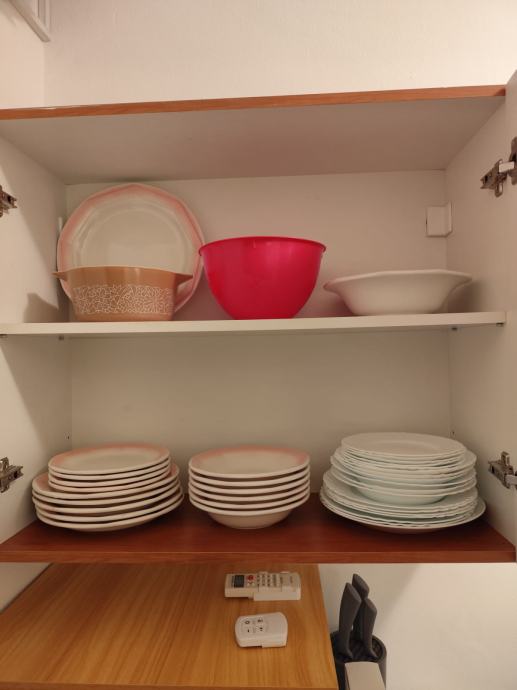 U stanu se nalaze skroz novi elementi: sudoper, ladičar, frižider/hladnjak, barski stol i barske stolice, tepisi i staze, novi nadmadrac s posteljinom kao i osnovno posuđe.