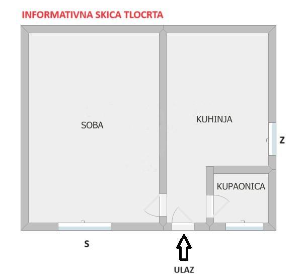Stan se nalazi na 1. katu kuće u dvorišnom dijelu zgrade od ukupno 8 stanova. Ulaz u stan je iz natkrivenog dijela terase. Sastoji se od dnevnog boravka/sobe, kuhinje, kupaonice i ulaznog hodnika. Prostor je odlično iskorišten. U stanu se nalaze zasebna brojila struje i plina.