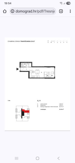 Stan 34 m2, garažno parkirno mjesto 15,78 m2.