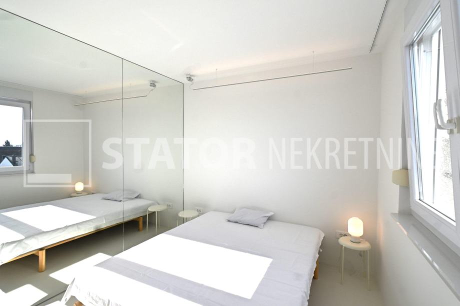 OZALJSKA, na 3. katu manje stambene zgrade iznajmljuje se dvosobni, moderni, minimalistički, novouređeni stan. Sastoji se od ulaznog hodnika, na desno dnevne sobe sa kuhinjom i prostorom za blagovanje. Ravno od ulaza je spavaća soba, lijevo kupaonica. U stanu su novi podovi, prozori, vrata i instalacije. U dnevnoj sobi cijelom širinom proteže se ugradbeni ormar. Manji dvosjed je na razvlačenje, kuhinja sa perilicom posuđa, hladnjakom i perilicom rublja. U spavaćoj sobi novi krevet i prostor za odlaganje. Kupaonica sa velikim ogledalima koji prostor čini prostranijim i svijetlim, novi tuš i nove sanitarije. U stanu je grijanje/ hlađenje na klime, jedna jedinica se nalazi u dnevnoj a druga u spavaćoj sobi. Stan je južne orijentacije tako da je svijetao i ugodan za boravak. Pripada mu i ostava površine 2m2 u podrumu zgrade. na nekoliko koraka je tramvajska stanica, tržnica, marketi, park Trešnjevka kao i sav pripadajući sadržaj….STAN JE SLOBODAN ZA NAJAM OD 01.05.2026. GODINE ALI SE MOŽE I RANIJE POGLEDATI!!!!!!!