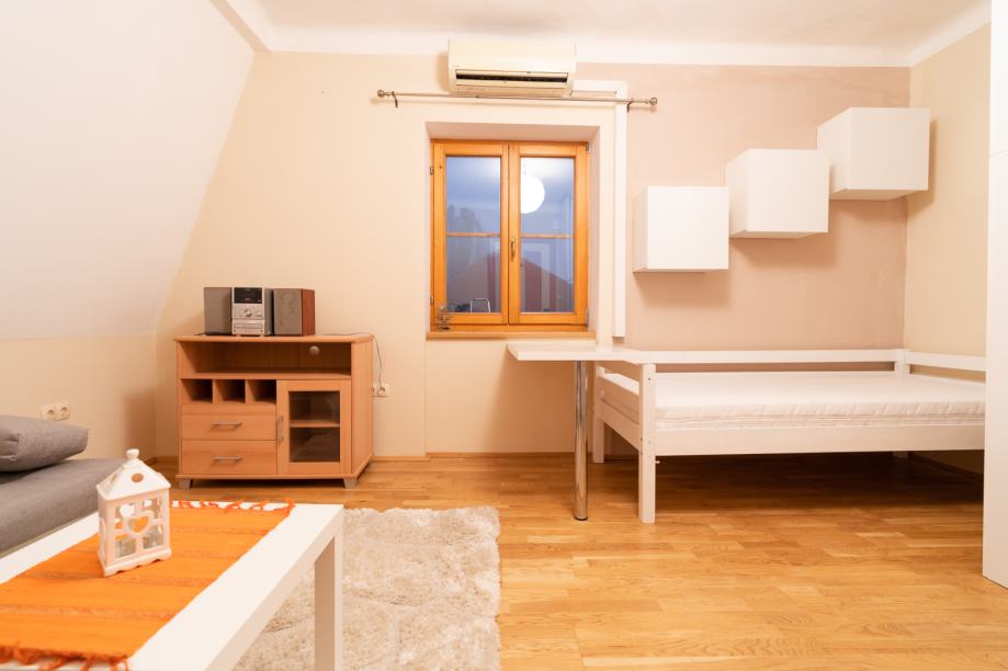 Stan je uredan, svijetao i funkcionalan, pogodan za jednu osobu ili par.