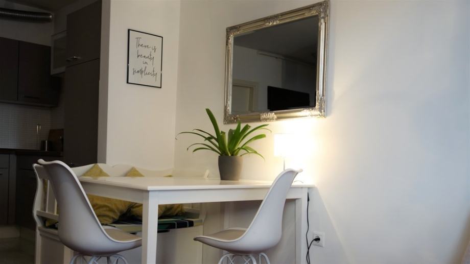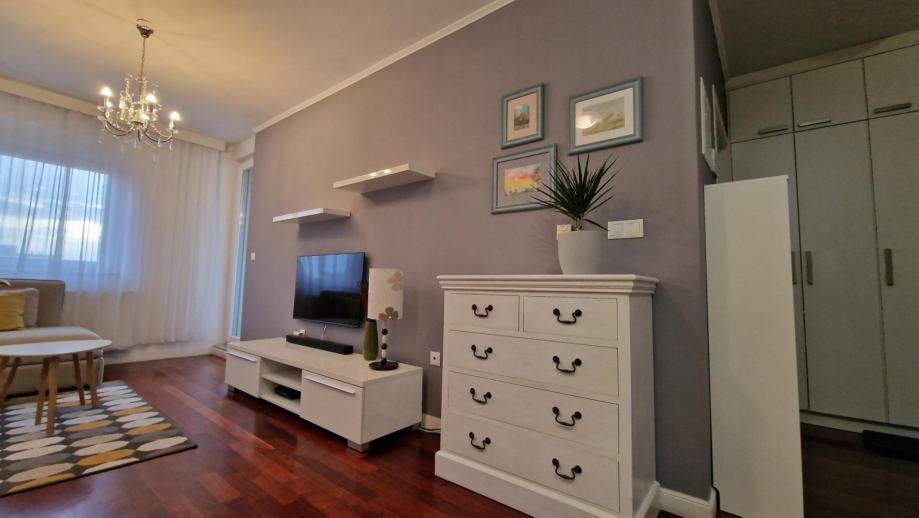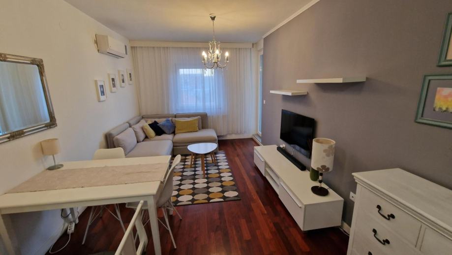 Stan se sastoji od dnevnog boravka s blagovaonicom i opremljenom kuhinjom, spavace sobe, prostrane kupaonice te ulaznog hodnika i loggie. Stan je vrlo ugodan, s puno svjetla, moderno uredjen sa svim namjestajem i modernim elektrickim uredjajima 4K smart TV, brzi internet, mikrovalna, perilica/susilica, klima.