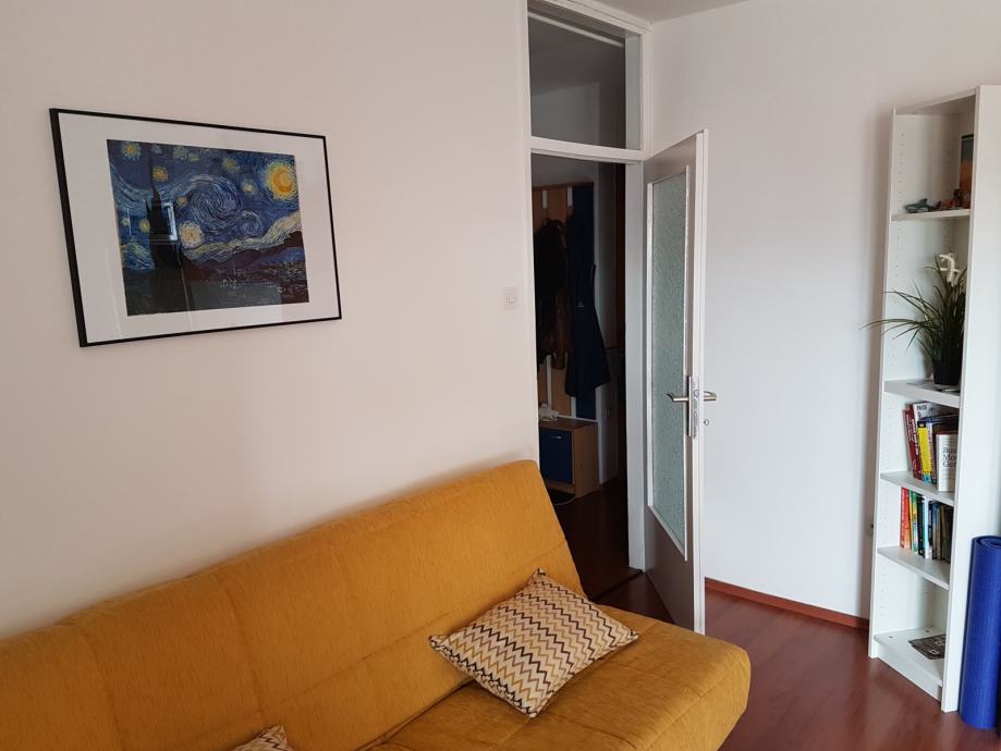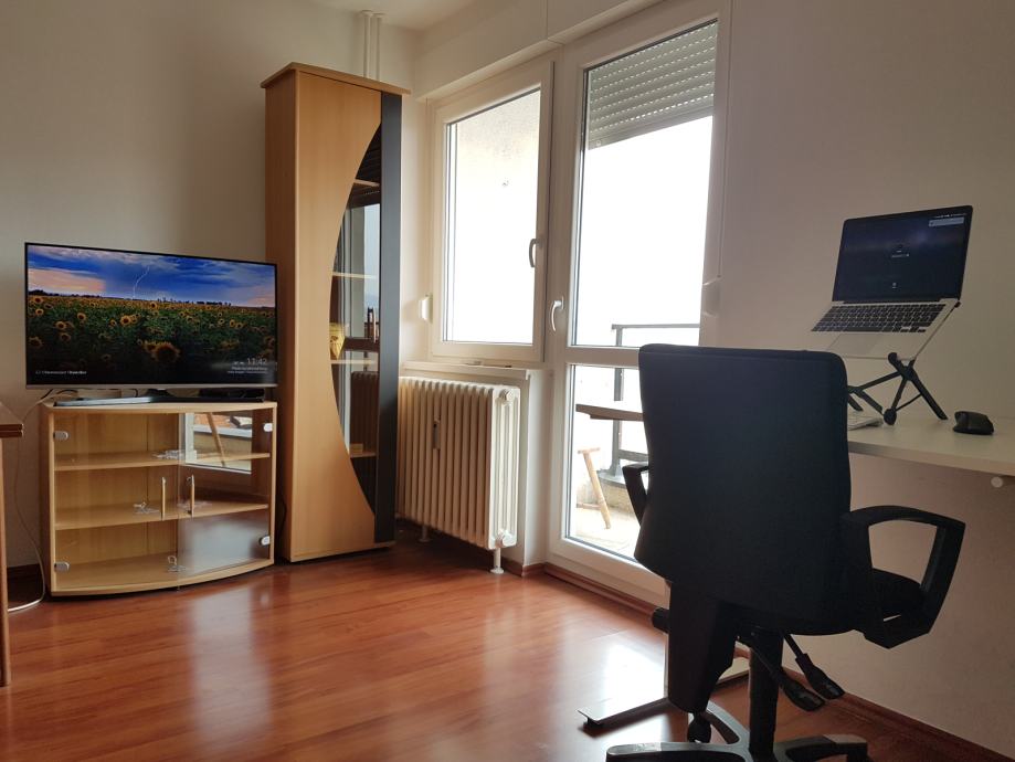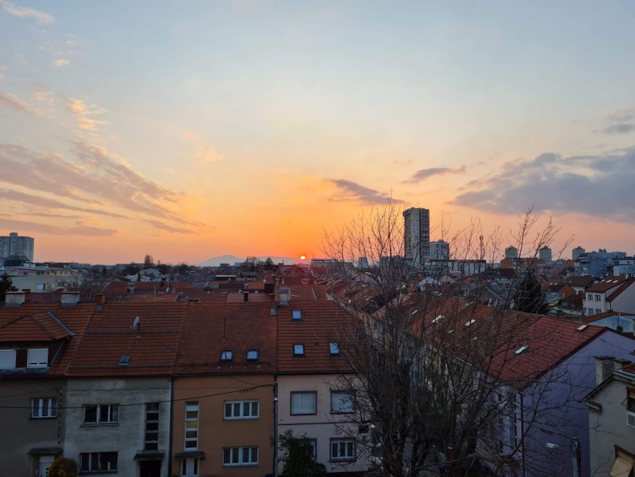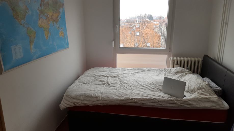 I am renting an apartment that is a 1-minute walk from a tram station (then 15 minutes to the main square with the tram) on the 4th floor of a building with an elevator. It overlooks a quiet street, away from cafes and noisy pubs. The apartment is bright and has a beautiful view of the Samobor Hills. It is fully furnished and equipped with an air conditioner, refrigerator, television, washing machine, microwave, etc.