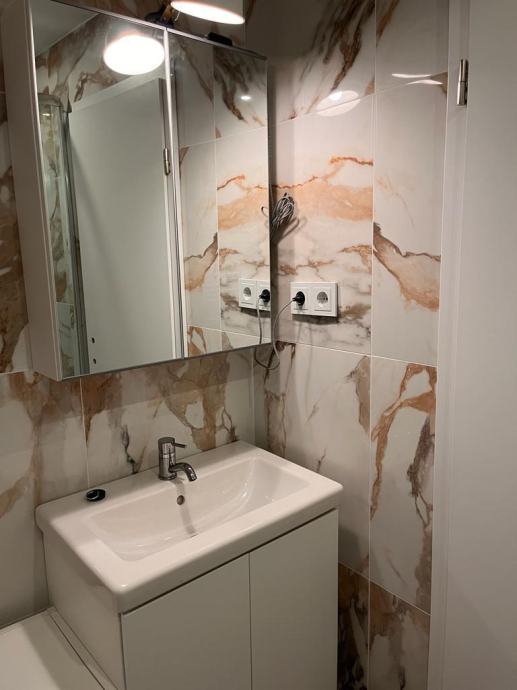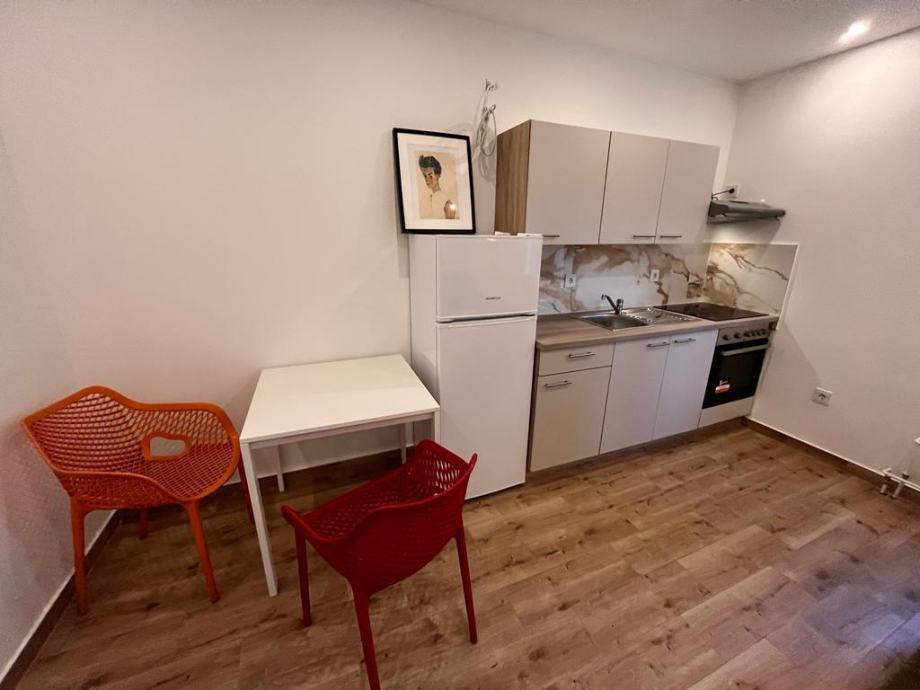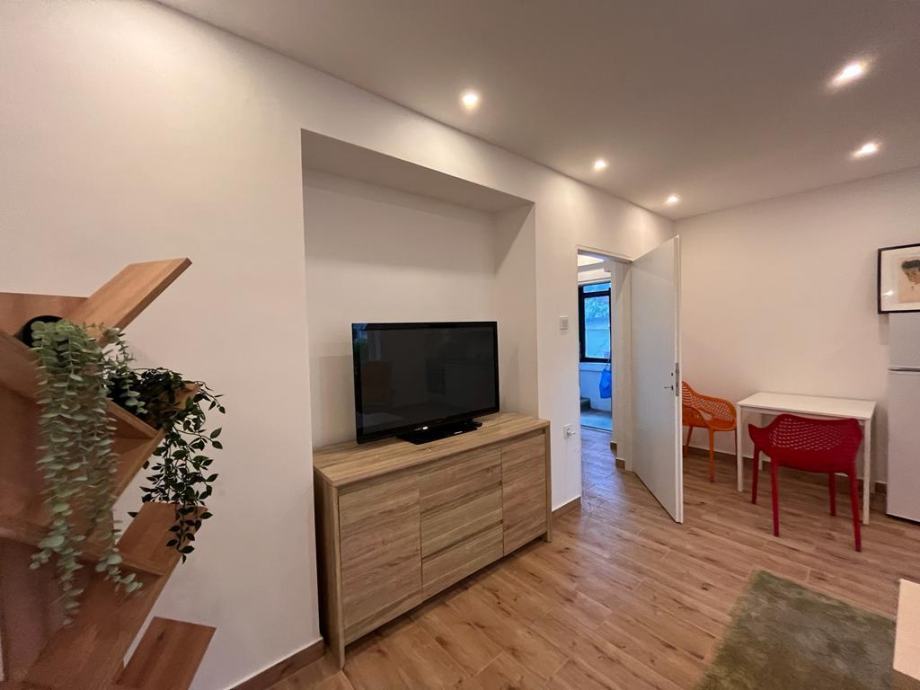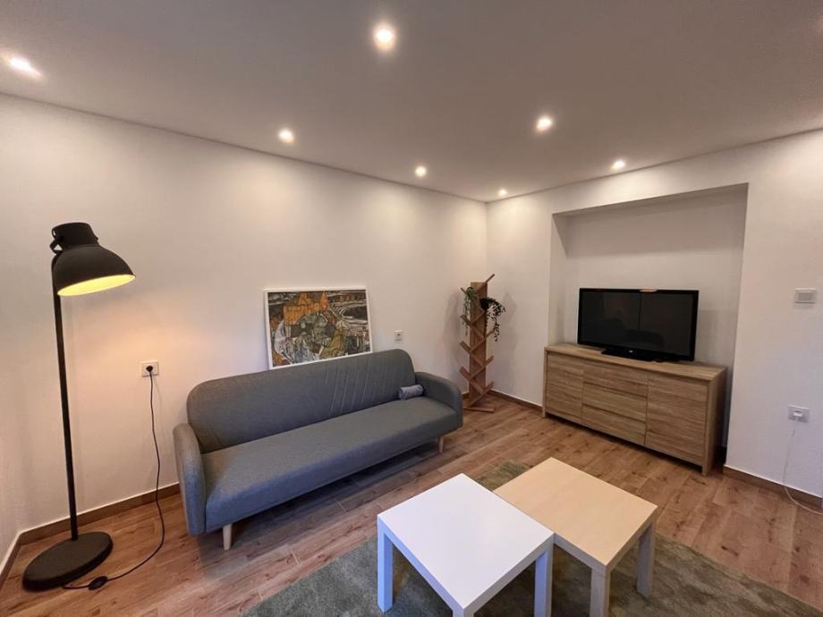Stan je novouređen (uređenje završeno u svibnju 2022.), sastoji se od malog ulaznog prostora, velike dnevne sobe s kuhinjom (hladnjak, štednjak, pećnica, mikrovalna pećnica) i blagavonskim dijelom, manje spavaće sobe i kupaonice (s perilicom za rublje).