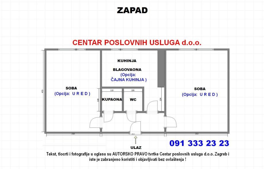 Tekst, tlocrti i fotografije u oglasu su AUTORSKO PRAVO tvrtke Centar poslovnih usluga d.o.o. Zagreb i iste je zabranjeno koristiti i objavljivati bez ovlaštenja !