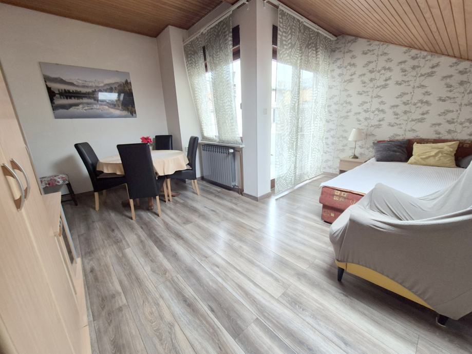 Stan se sastoji od dnevnog boravka sa blagovaonom i izlazom na balkon, kuhinje i spavače sobe te kupatila sa WC-om.