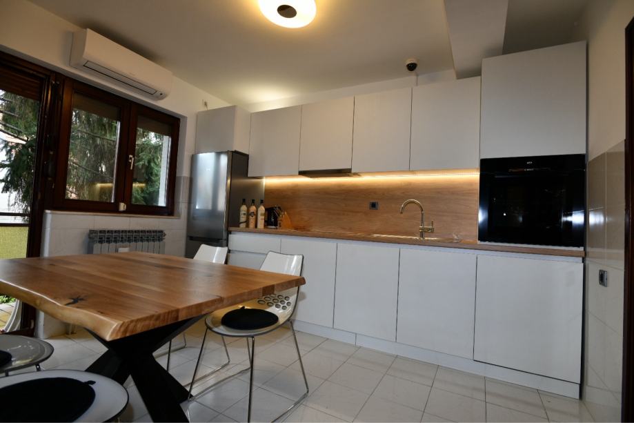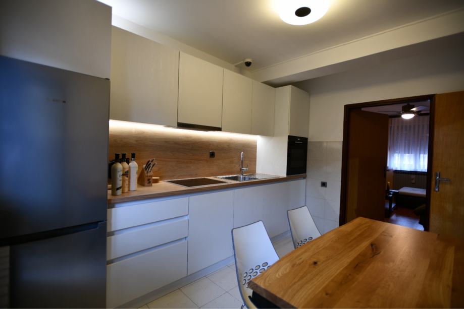 Furnished and furnished two bedroom apartment of 55 m2, on the first floor of a residential building without an elevator, near Remiza. It consists of an entrance hall with a built-in wardrobe of the EDURO brand, a kitchen, a living room with built-in wardrobes of the EDURO brand, a bedroom with a built-in wardrobe of the EDURO brand, a bathroom with a new washing machine. The apartment has security doors, alarm system, surveillance cameras, fiber optic internet, telephone line, new Daikin air conditioning, central heating, newly renovated kitchen with all household appliances including a new dishwasher. Parking is possible around the building. It is located in a quiet street Lovranska (Trešnjevka). Excellent public transport connections to all parts of the city.