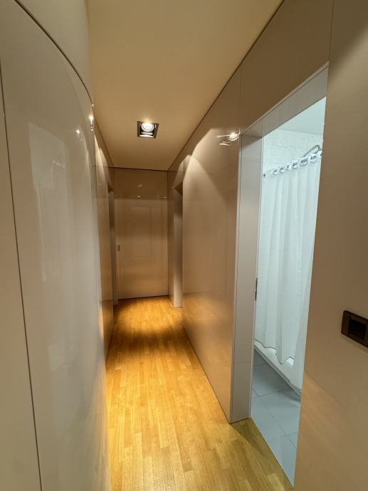 Stan je u potpunosti namješten i opremljen (kuhinjski uređaji, perilica rublja, TV, klima uređaj, ugradbeni ormari) te je spreman za useljenje bez dodatnih ulaganja.