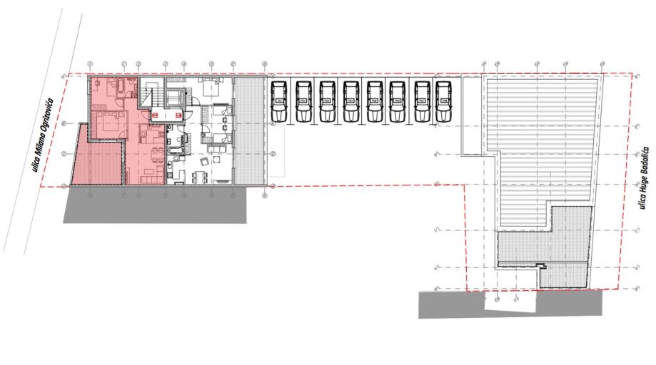U prodaji su i dodatna garažna parkirna mjesta u podrumu zgrade površine od 12,50 m2 do 33,50 m2 (3.300 €/m2) te garažna parkirna mjesta u prizemlju površine od 14,30 m2 do 16,55 m2 (3.300 €/m2).