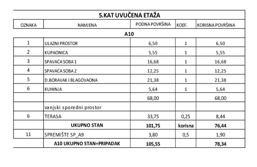 Uz stan A10 je unutar cijene uključeno spremište (ukupna neto prodajna površina 78,34 m2).
