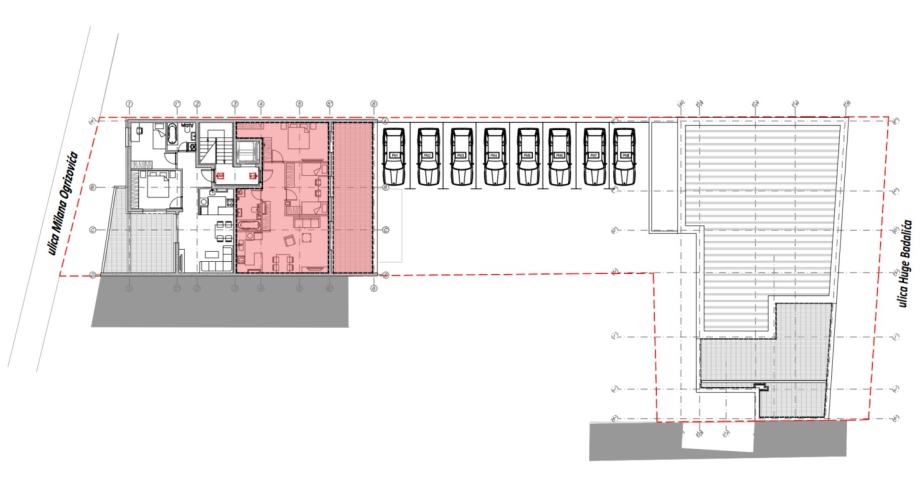U prodaji su i dodatna garažna parkirna mjesta u podrumu zgrade površine od 12,50 m2 do 33,50 m2 (3.300 €/m2) te garažna parkirna mjesta u prizemlju površine od 14,30 m2 do 16,55 m2 (3.300 €/m2).