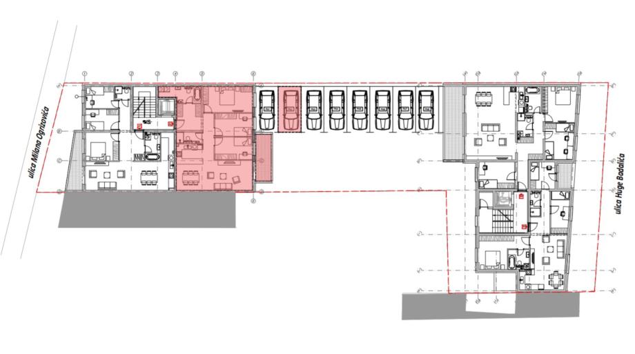 U prodaji su i dodatna garažna parkirna mjesta u podrumu zgrade površine od 12,50 m2 do 33,50 m2 (3.300 €/m2) te garažna parkirna mjesta u prizemlju površine od 14,30 m2 do 16,55 m2 (3.300 €/m2).