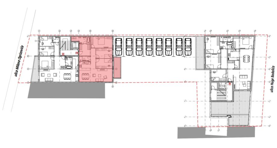 U prodaji su i dodatna garažna parkirna mjesta u podrumu zgrade površine od 12,50 m2 do 33,50 m2 (3.300 €/m2) te garažna parkirna mjesta u prizemlju površine od 14,30 m2 do 16,55 m2 (3.300 €/m2).
