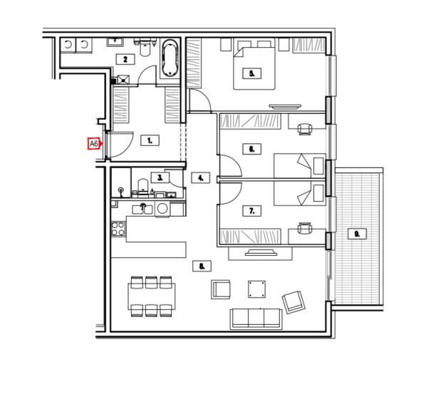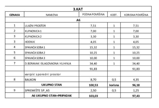 Uz stan A6 je unutar cijene uključeno spremište (ukupna neto prodajna površina 97,43 m2).