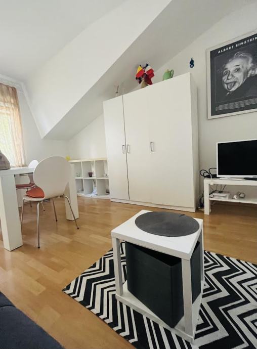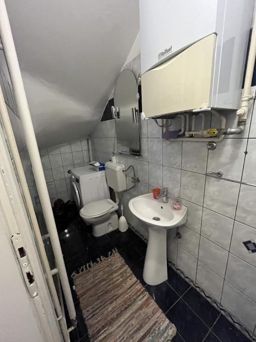 Iznajmljuje se potpuno opremljena dvoetazna kuca u blizini autobusnog kolodvora, 50 m2, na donjoj etazi kupaonica s novom perilicom i spavaca soba i hodnik te na gornjoj dnevna soba s kuhinjom i blagavaonicom,dvoriste, parkirno mjesto i prekrasna sjenica u dvoristu na koristenje. Odrzavana. Male rezije. Ljubimci nisu dozvoljeni. Agencije iskljucene