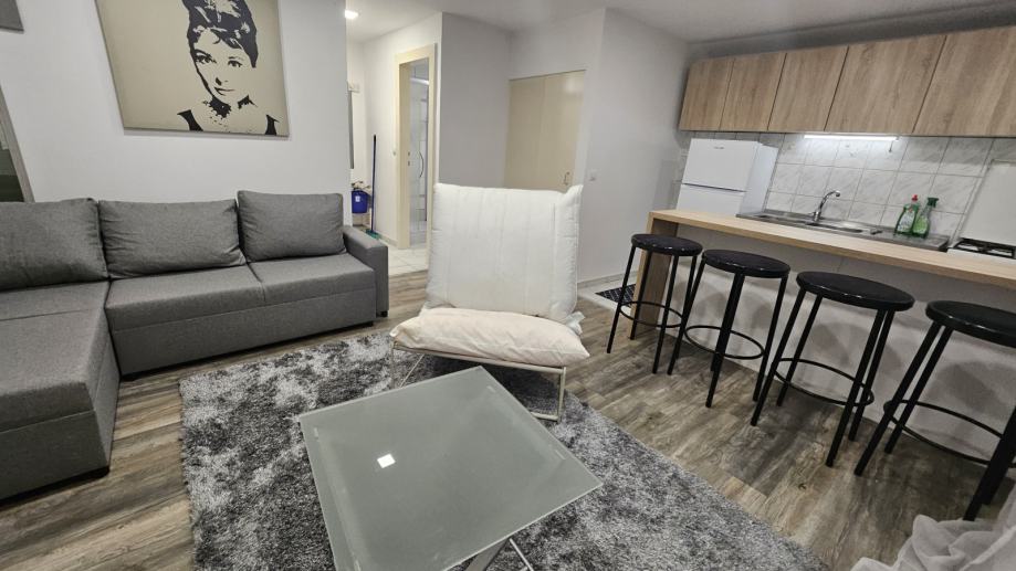 Garsonjera 30m2 + 30m terase u sklopu privatne kuće sa zasebnim ulazom. Potpuno namještena, perilica rublja, ležaj na razvlačenje, centralno grijanje, klima..Optimalna za maksimalno 2 odobe. Blizina SNB i fakulteta, busa i tramvaja.