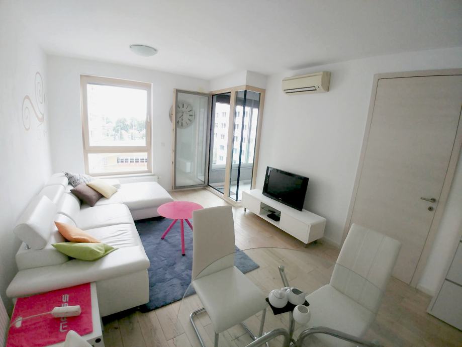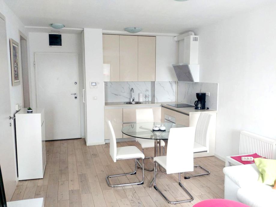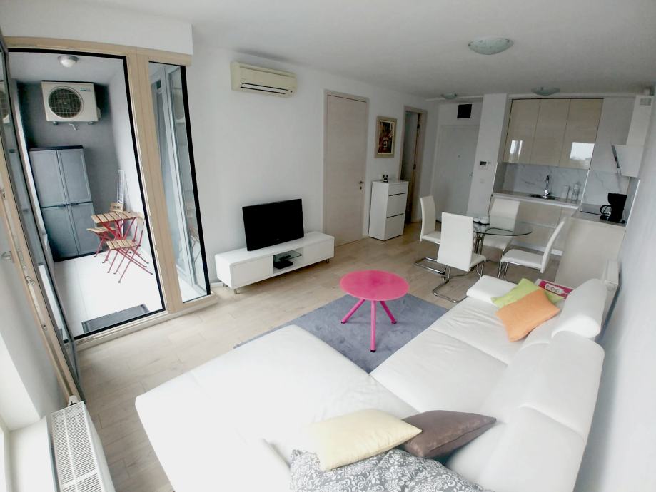 Stan se sastoji od klimatiziranog dnevnog boravka sa blagovaonom i izlazom na lođu, kuhinje sa perilicom posuđa, spavače sobe sa ormarima, te kupatila sa WC-om.