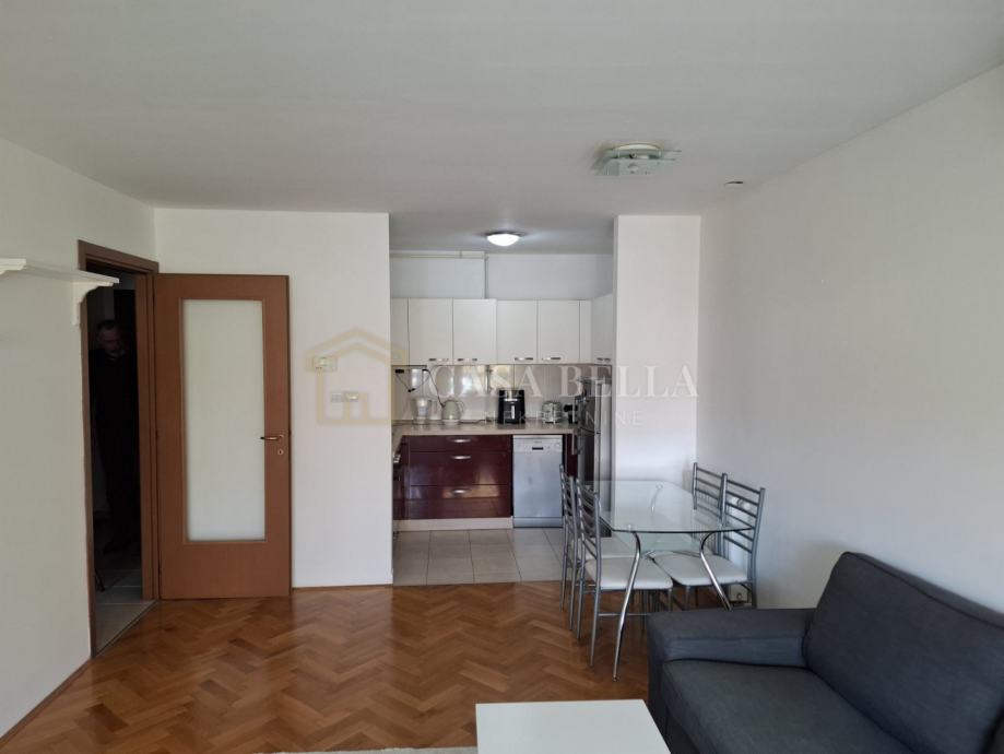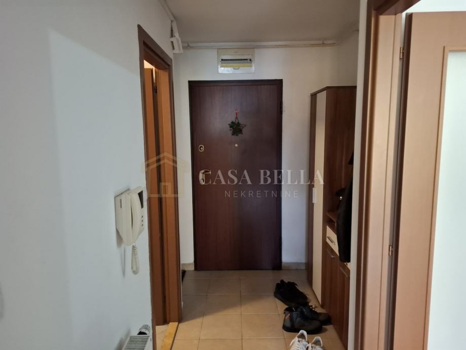 Stan se sastoji od ulaznog prostora,spavaće sobe,ostave,kupaonice,kuhinje i dnevnog boravka s blagavaonicom.