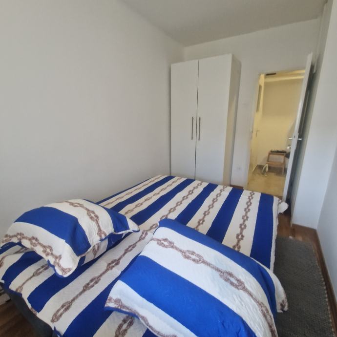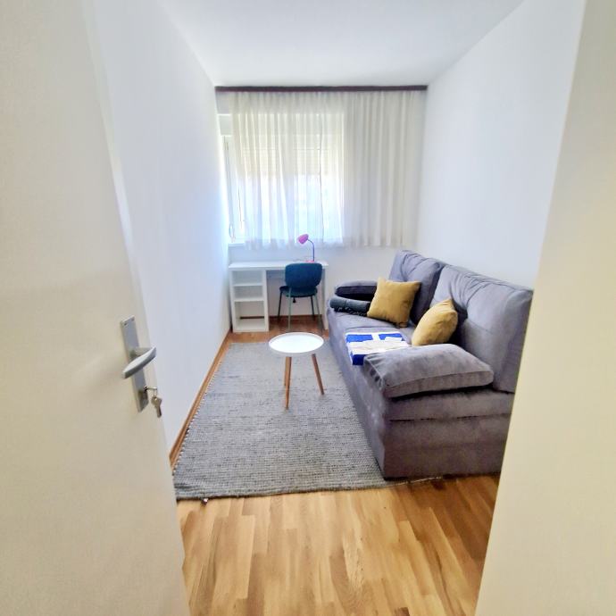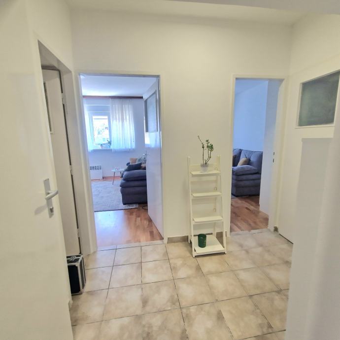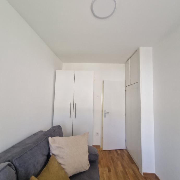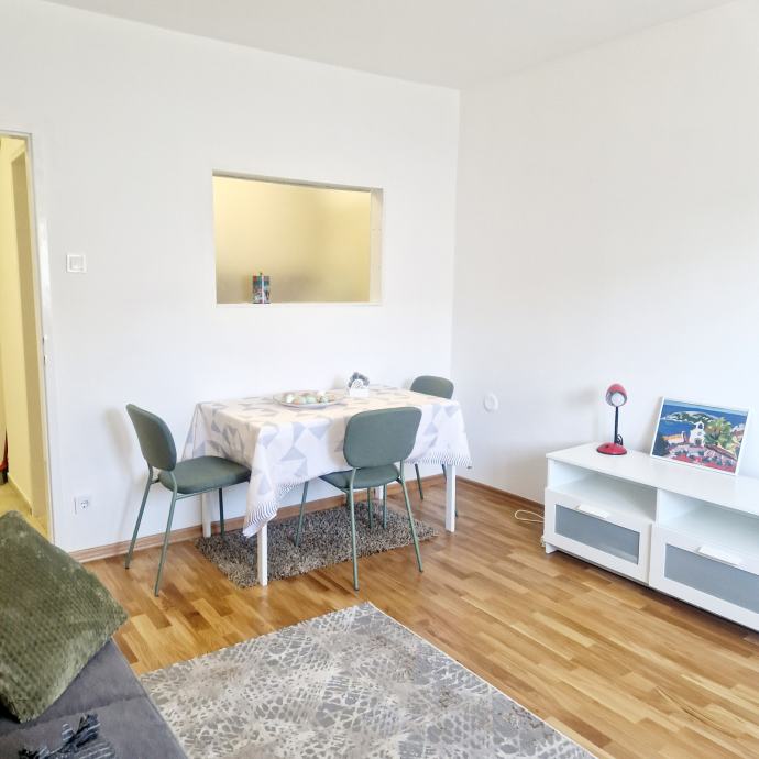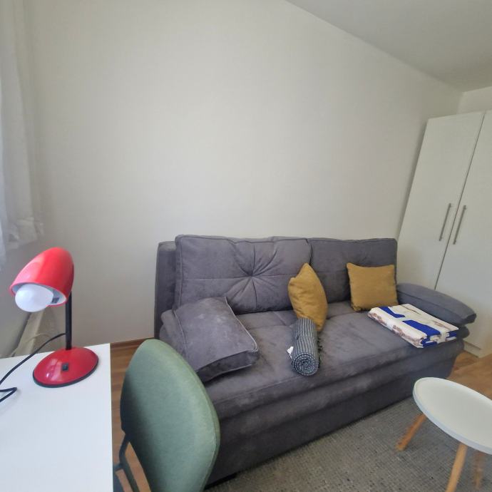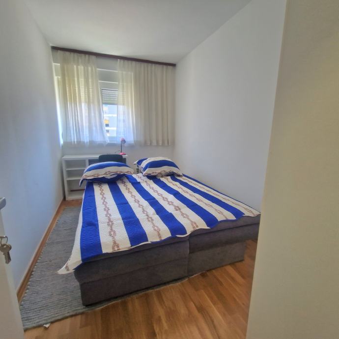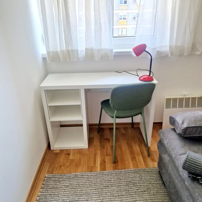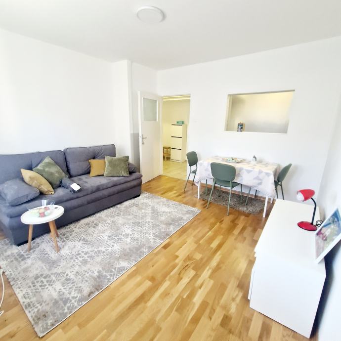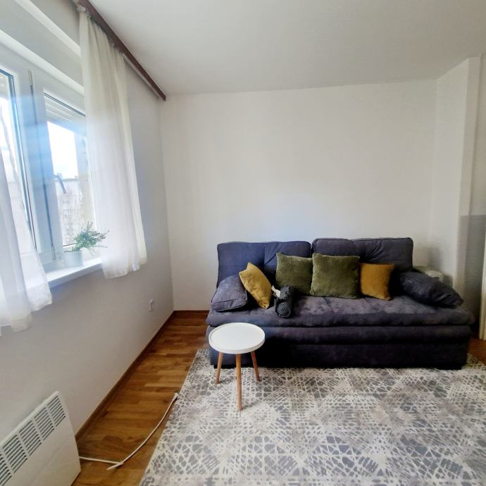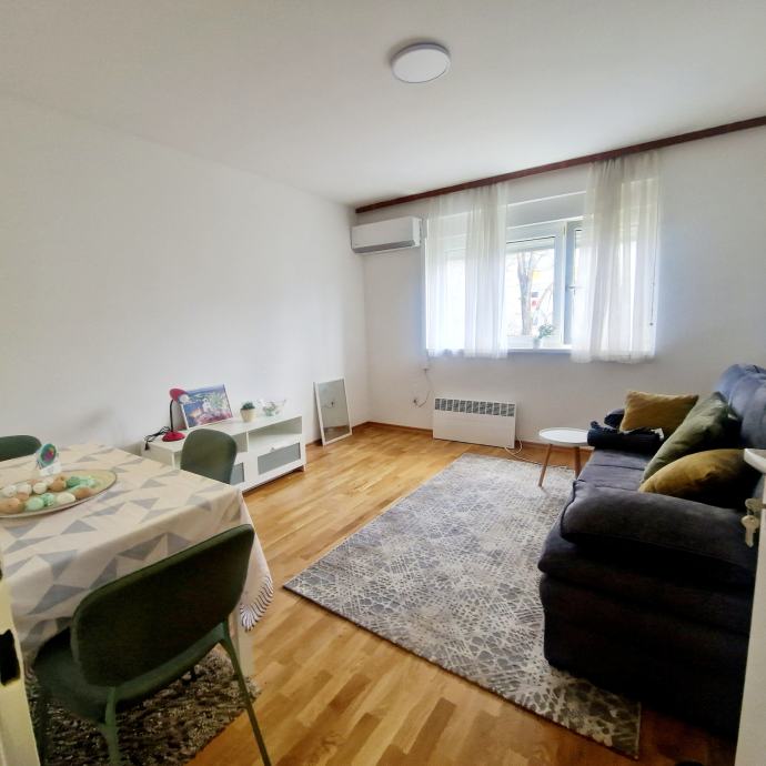 Iznajmljuje se novouređen dvosobni, potpuno namješten stan, površine 38 m2 u Trnskom, Novi Zagreb zapad. Nalazi se na 3. katu dobro održavane stambene zgrade s pogledom na park. Zgrada je bez lifta. Iznajmljuje se za 550 eura mjesečno plus režijski troškovi. Režijski troškovi su oko 70 eura. Pričuvu plaća vlasnik stana. Stan se sastoji od dnevnog boravka, spavaće sobe, kuhinje, hodnika i kupaonice s wc-om. Stan je upravo u cjelosti renoviran, te opremljen novim namještajem. Na raspolaganju su kućanski aparati (perilica, štednjak, hladnjak te klima uređaj). Stan ima ugrađenu plastičnu stolariju, a grijanje je na konvektorske radijatore i klima uređaj. Prednosti su mu odličan raspored, niski režijski troškovi, besplatno parkiranje ispred zgrade. U blizini se nalazi javni prijevoz autobusom i tramvajem, dom zdravlja, tržnica, trgovački centri, vrtić, škola, parkovi, muzej i kina te svi ostali sadržaji bitni za ugodan i kvalitetan život. Prednost zaposlenima.